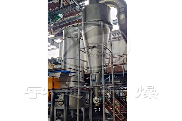 經過粉碎后,物料在閃蒸干燥主塔內與加熱介質充分的接觸。其中,氣固混合的好壞決定整個干燥速率的大小。為了提高氣流速度,在閃蒸干燥機的底部設置倒錐結構裝置。