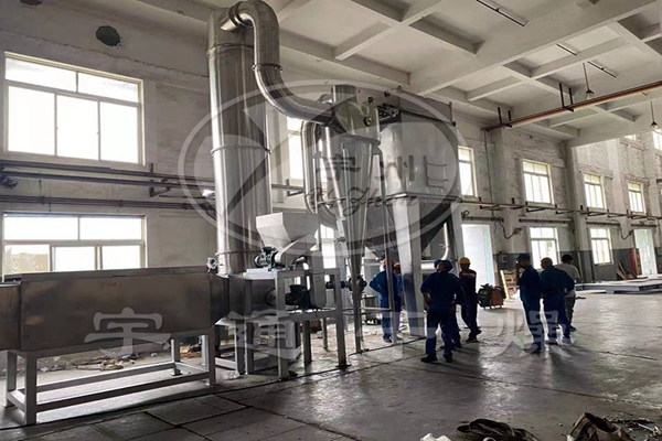 破碎是整個閃蒸干燥過程的步也是較重要的一步。被干燥的物料狀態主要是膏狀、濾餅狀。如沒有破碎就不能進行閃蒸干燥,由此我們可以得到一個結論:黏性強的物料如直接使用閃蒸干燥機其干燥效果較差,需要適當加入添加劑避免物料結塊。該過程中主要是攪拌片與高速旋轉的氣體配合完成粉碎。