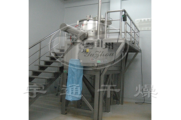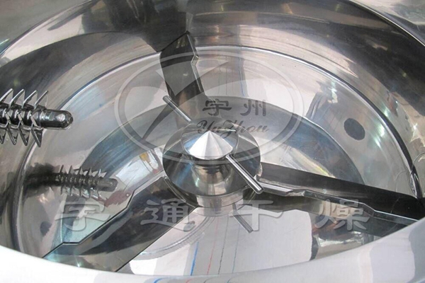 粉體物料與粘合劑在圓筒形容器中由底部混合漿充分混合成濕潤軟材,然后由側(cè)置的高速粉碎槳切割成均勻的濕顆粒。