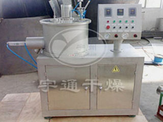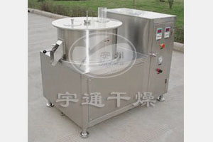 將前道工序做成的濕顆粒投入旋轉(zhuǎn)離心盤內(nèi),使?jié)耦w粒受到環(huán)隙空氣浮力、旋轉(zhuǎn)離心力、自身重力作用,呈環(huán)形繩股狀運(yùn)動(dòng),從合理方向通過多流體噴槍向運(yùn)動(dòng)料層噴入配方液,從而形成圓球度很高的球丸,原理與旋轉(zhuǎn)流化床類似。
