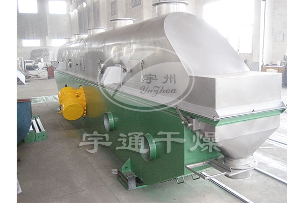 3. 由于施加振動,可使小流化氣速降低,因而可顯著降低空氣需求量,進而降低粉塵層夾帶,配套熱源,風機,旋風分離器等也可相應縮小規格,成套設備降低,效果明顯。可方便地依靠調整振動參數來改變在機內滯留時間。其活塞流式的運行降低了物料粒度均勻性及規則性要求,易于獲得均勻的干燥產品。