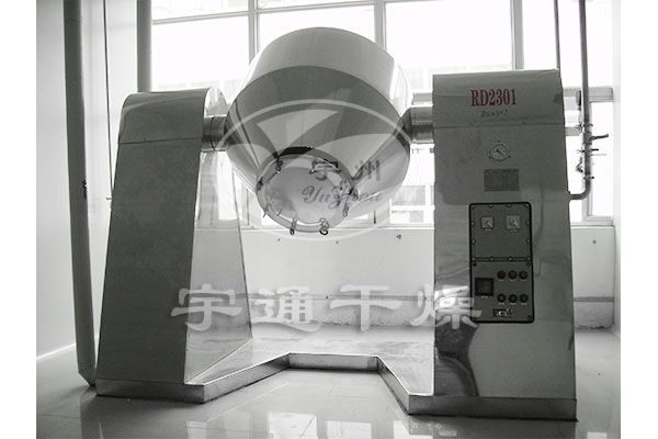 由于罐體內(nèi)處于真空狀態(tài),各種物料中的溶媒(包括水)在真空的條件下均能在較低的溫度迅速汽化,且罐體的回轉(zhuǎn)使物料不斷地上下、內(nèi)外翻動(dòng),物料不斷地更新與器壁接觸的表面,從而充分利用了器壁所傳導(dǎo)的熱量,加快了物料的干燥速度,提高干燥效率,并能達(dá)到均勻干燥的目的。
