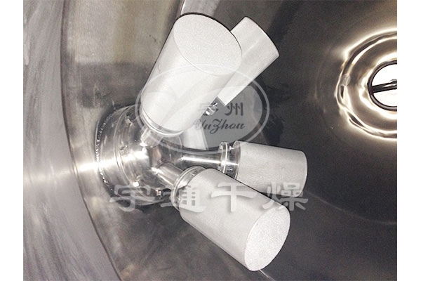 干燥過程在負壓條件下進行,因此即使含有機溶劑介質,但其過程仍非常安全,并且干燥速度快,每批產品干燥時間約為4小時;在減壓條件下進行的干燥過程,而且設定干燥溫度比較低,真空泵始終在持續工作,所以產品品質穩定;系統被設計了特制的袋濾器,所以無粉塵飛揚;二級冷凝裝置的大面積冷卻,溶劑回收率高;加熱裝置可采用熱水、蒸汽、導熱油加熱;特制袋濾器拆洗方便;整套機組傳動部件少,且不在強負荷條件下工作,因此機組使用壽命長。