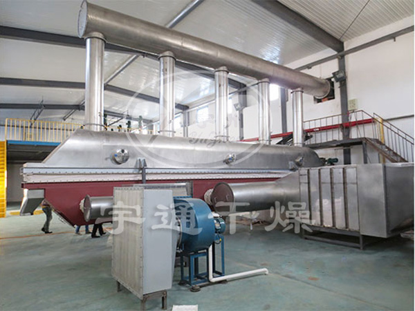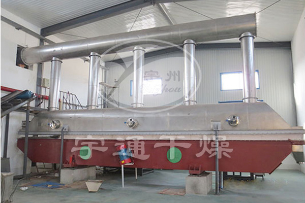 3. 由于施加振動,可使小流化氣速降低,因而可顯著降低空氣需求量,進而降低粉塵層夾帶,配套熱源,風機,旋風分離器等也可相應縮小規格,成套設備降低,效果明顯。可方便地依靠調整振動參數來改變在機內滯留時間。其活塞流式的運行降低了物料粒度均勻性及規則性要求,易于獲得均勻的干燥產品。