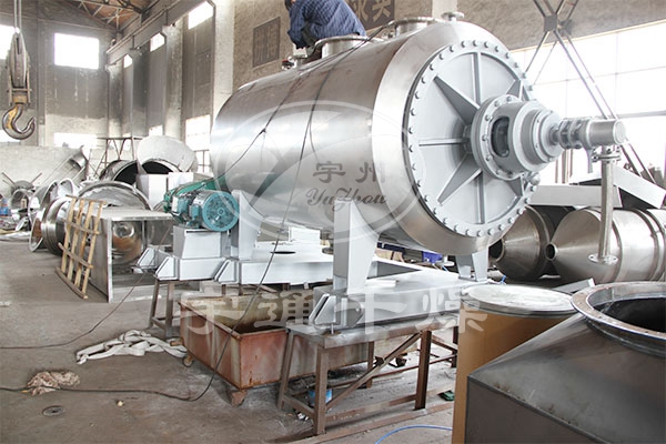 磷酸鐵鋰干燥工程之臥式攪拌真空干燥機是利用物料中的水份在真空狀態下沸點降低的特點來進行干燥的設備。