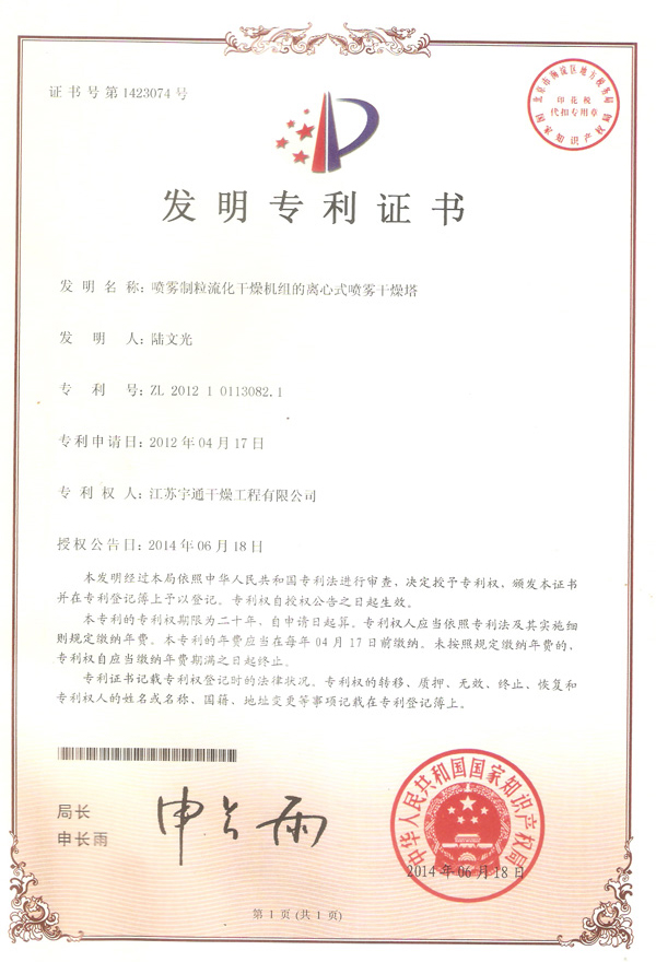 發明-噴霧制粒流化干燥機組的離心式噴霧干燥塔