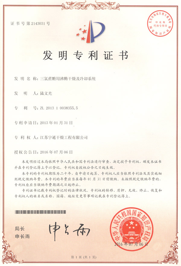發明-三氯蔗糖用沸騰干燥及冷卻系統