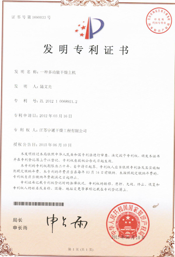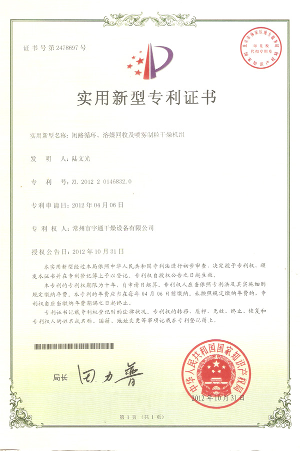 發明-閉路循環、溶媒回收及噴霧制粒干燥系統的干燥主機及其工作方法