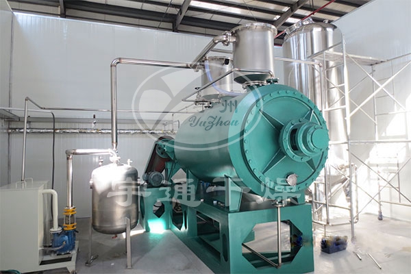 ??醫藥中體真空耙式干燥機是利用物料中的水份在真空狀態下沸點降低的特點來進行干燥的設備。該設備用蒸汽(熱水、導熱油)對夾套間接加熱,水份受熱蒸發并被及時抽除。在干燥機殼體內部,耙齒通過傳動軸帶動,耙齒端與軸線設計有一定夾角,主軸通過正向反向轉動,使物料沿軸向移動以利于干燥及出料。殼體內部可加入二根或四根敲擊棒,以利于物料的快速干燥粉碎。敲擊棒為與殼體等長的空心厚壁不銹鋼管,其在殼體內部是自由運動的,敲擊棒在內部不斷敲擊物料,使物料不斷被敲碎(物料獲得更大的比表面積)來加速干燥過程,成品物料質量更佳。